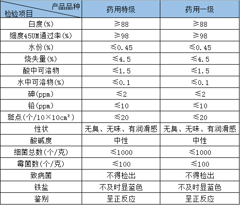 "海達牌"超細滑石粉是選用優質滑石礦為原料,經過采選、水洗、風干、破碎、研磨等工序加工而成。每道工序,都嚴格按照中國藥典2010版的操作規格和檢測標準進行生產,最終產品經檢測合格后,才準予包裝出廠。產品應用于西藥、中成藥、糖漿輔藥.